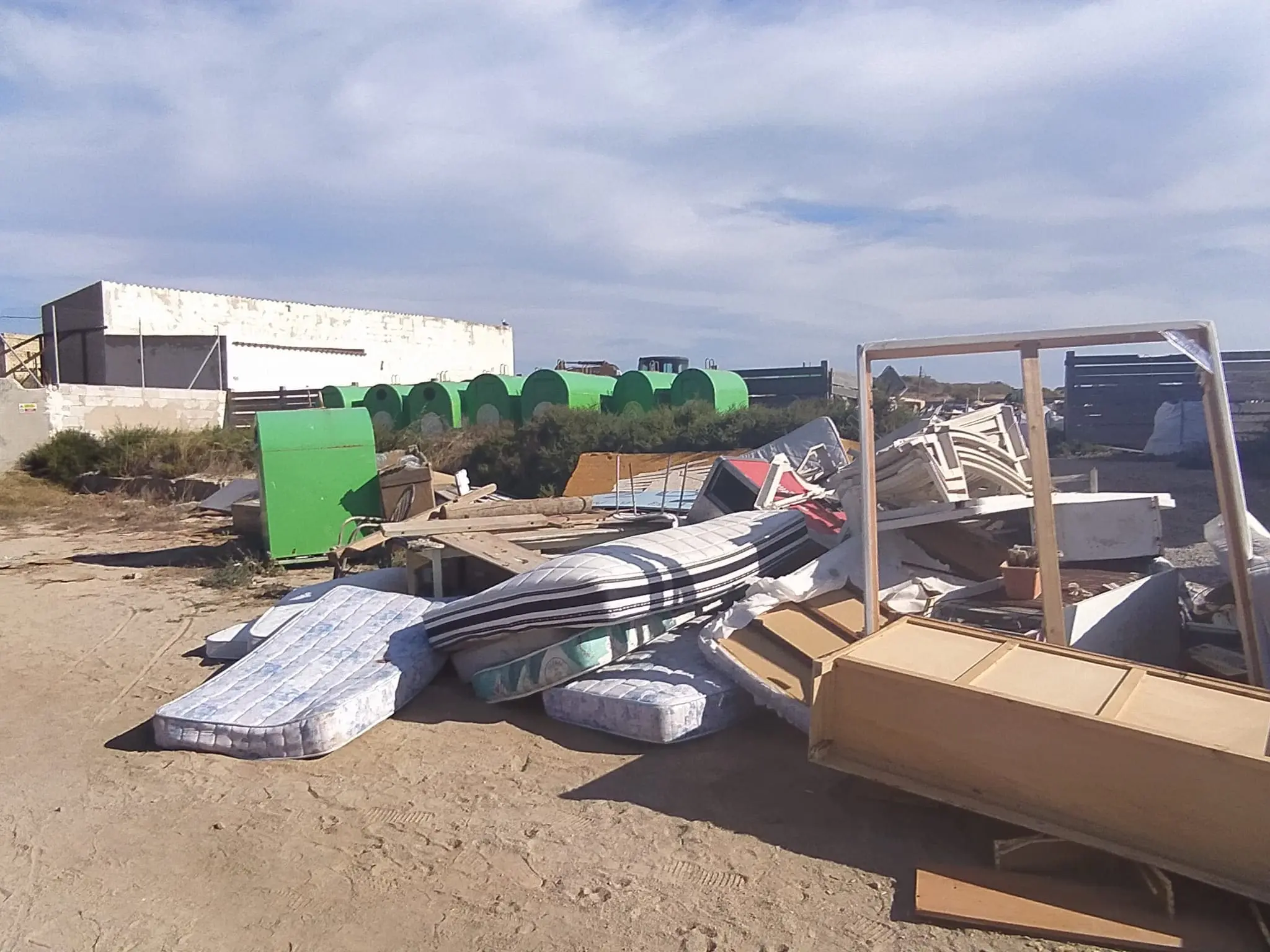 Colchones acumulados de cualquier manera en el sendero de acceso a una cala, palets rotos tirados en varios sitios, muebles viejos, bolsas de basura acumuladas en diferentes lugares…