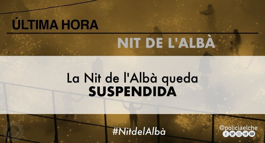 El Ayuntamiento de Elche ha decidido suspender la Nit de L’Albà debido a la situación meteorológica en la provincia que está viviendo una jornada de riesgo extremo de incendios, tormentas secas y rachas de viento. La Junta de Seguridad municipal se ha reunido esta tarde y ha llegado a la determinación de no celebrar el tradicional evento.