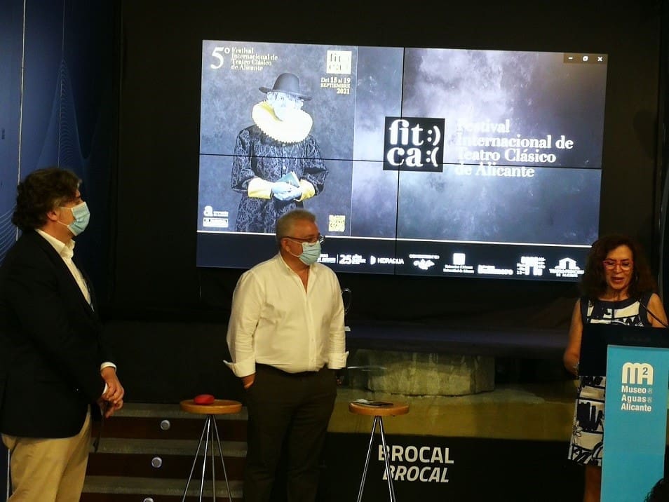 El edil de Cultura, Antonio Manresa, el director de comunicación y Relaciones Institucionales de Hidraqua y Aguas de Alicante, Martín Sanz, y la Directora artística del Festival, María Dolores Padilla, han presentado esta mañana en el Museo de Aguas, el V Festival Internacional de Teatro Clásico de Alicante, que tendrá lugar del 15 al 19 de septiembre de 2021.