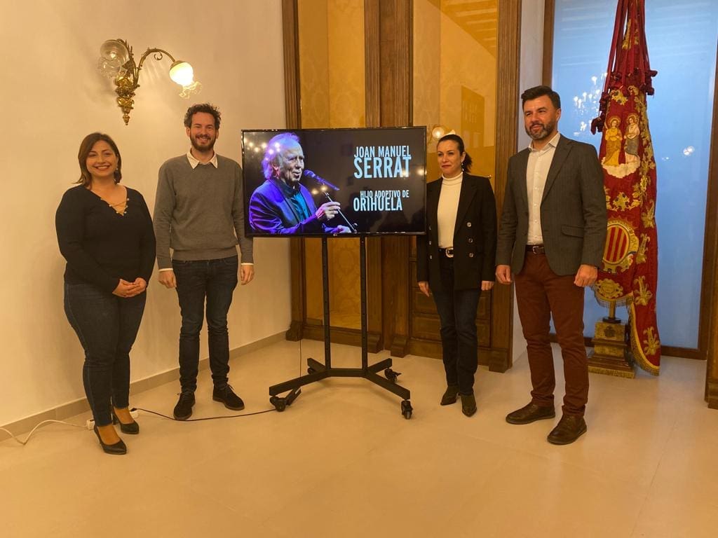 El acto institucional de nombramiento de Joan Manuel Serrat como hijo adoptivo de la ciudad de Orihuela se celebrará el próximo 17 de febrero, a partir de las 20 horas, en el Teatro Circo Atanasio Díe Marín. Este anuncio lo ha hecho hoy la alcaldesa, Carolina Gracia, junto al concejal de Festividades, Antonio Sánchez, quien ha explicado los detalles del acto.