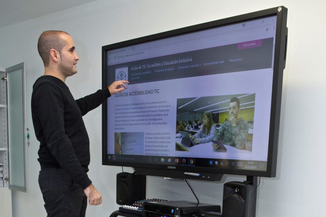 Además de eliminar las barreras arquitectónicas, desde la Universidad de Alicante se ha hecho una especial apuesta por las Tecnologías de la Información y de la Comunicación (TIC) para garantizar la accesibilidad de toda la comunidad universitaria.