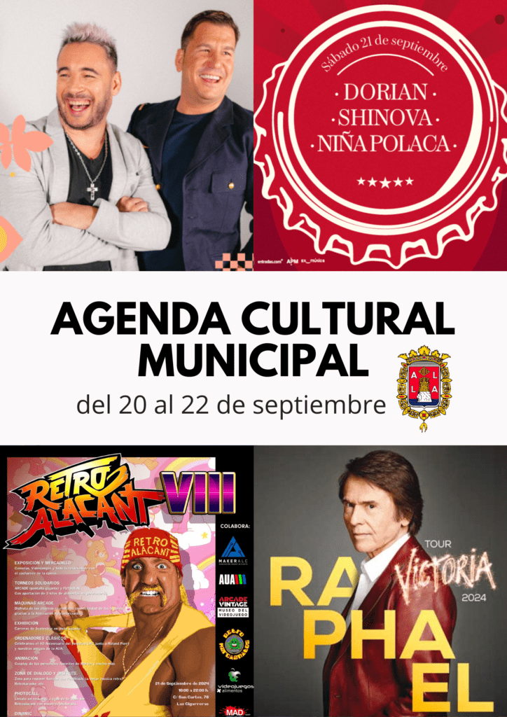 El 8º Festival Internacional de Teatro Clásico también llega con tres grandes obras en el Principal y Las Cigarreras presenta el festival ‘Retro Alacant VIII’, con campeonatos de videojuegos arcade, disfraces y seminarios de la época. El Castillo de Saanta Bárbara trae un espectáculo de mágia de la mano del mago Guillermo Avilés. Y las fiestas patronales llegan a los barrios de Villafranqueza, Princesa Mercedes y Ciudad de Asís.