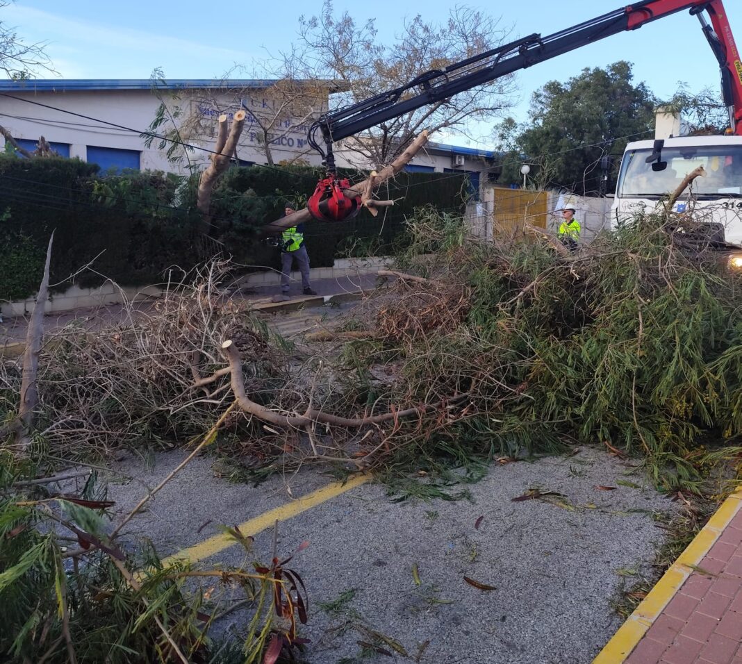 Entre las actuaciones más destacadas se encuentra la retirada de una acacia de gran porte caída en las inmediaciones del Colegio Nuestra Señora del Rosario, así como intervenciones en calles y avenidas como San José (La Mata), El Limonar y Flecha (El Chaparral), Avenida París, Avenida Cortes Valencianas y Cala Ferris, entre otras.