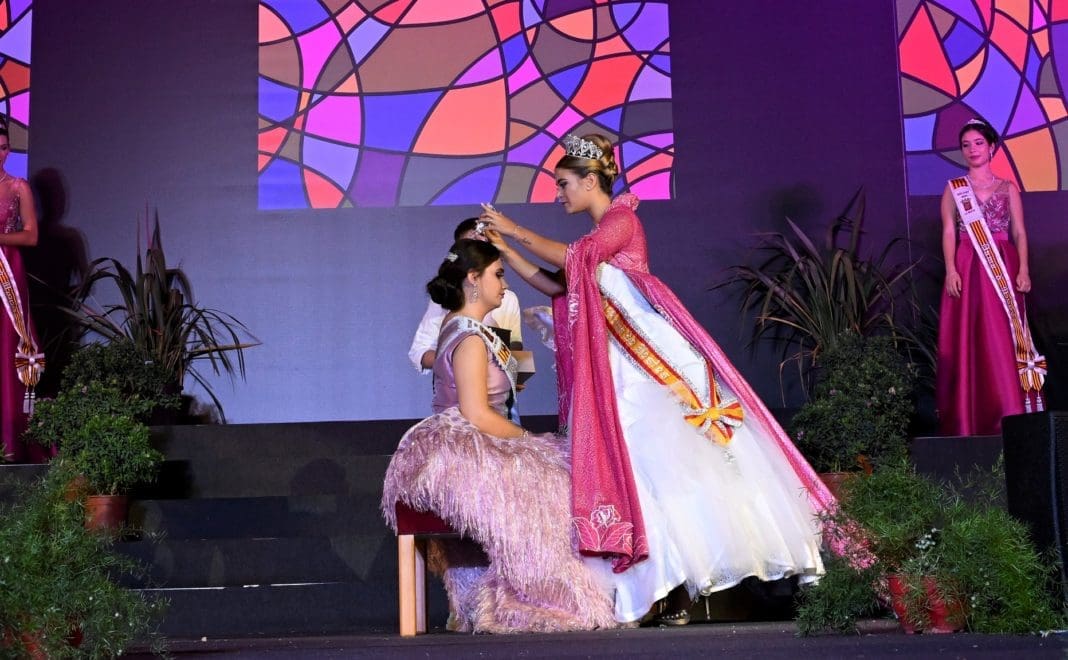 El momento “mágico” de la noche fue cuando Teresa Mercado Llorens fue coronada como reina de “les Festes d’Agost 2020” por Mari Fernández Jumilla. La reina de 2019 le puso la banda y la corona a la reina de 2020 y le entregó el cetro, pasándole el testigo real festero, para que continúe la dinastía de La Nucía.