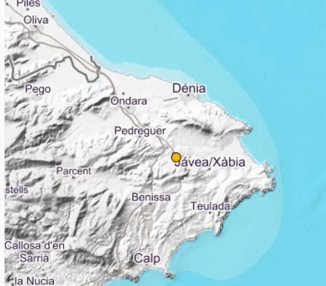 El terremoto se ha registrado a las 14:21 horas al SE de la comarca de La Marina, en Gata de Gorgos.