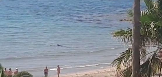 Un tiburón se acerca a la orilla de la playa Aguamarina en Orihuela