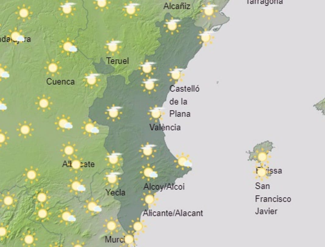 La Comunitat Valenciana vivirá un sábado con temperaturas máximas en ascenso, que superarán los 30 grados en buena parte del territorio y que, de hecho, podrán alcanzar los 34º en localidades del interior de Valencia y del sur de Alicante como Ontinyent y Orihuela.