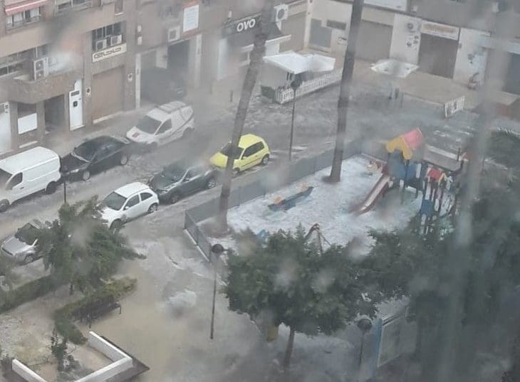 Y en puntos como El Campello, el granizo ha dejado un manto blanco en el Rincón de la Zofra.