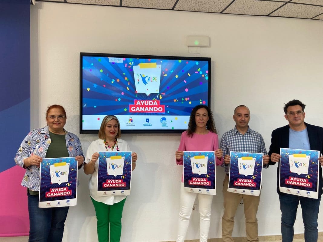 La concejal de Comercio y Hostelería del Ayuntamiento de Torrevieja, Rosario Martínez, junto con la edil de Ong´s, Concha Sala, la presidenta de ALPE, Heidi Aznar, el presidente de APYMECO, Jorge Almarcha, y el presidente de la Asociación de Empresas de Hostelería de Torrevieja y Comarca, José Ignacio Pastor, han presentado en la mañana de hoy la Campaña AYUDA GANANDO 2022, que comenzará mañana miércoles y que tiene como finalidad apoyar a la Asociación ALPE de Torrevieja con todo lo recaudado.