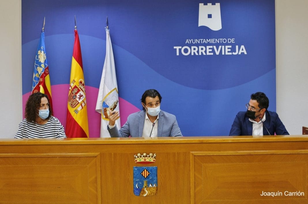 El alcalde de Torrevieja, Eduardo Dolón, la concejal de Comercio y Hostelería, Rosario Martínez, y el presidente de APYMECO, Jorge Almarcha, han comparecido en la mañana de hoy para valorar la enorme aceptación que ha tenido la segunda edición del bono consumo, que comenzaba ayer jueves, a las 16:00 horas, y se agotaba la compra de bonos en menos de cinco horas. Todas las personas que han comprado bonos podrán gastarlo en los establecimientos adheridos hasta el 15 de diciembre.