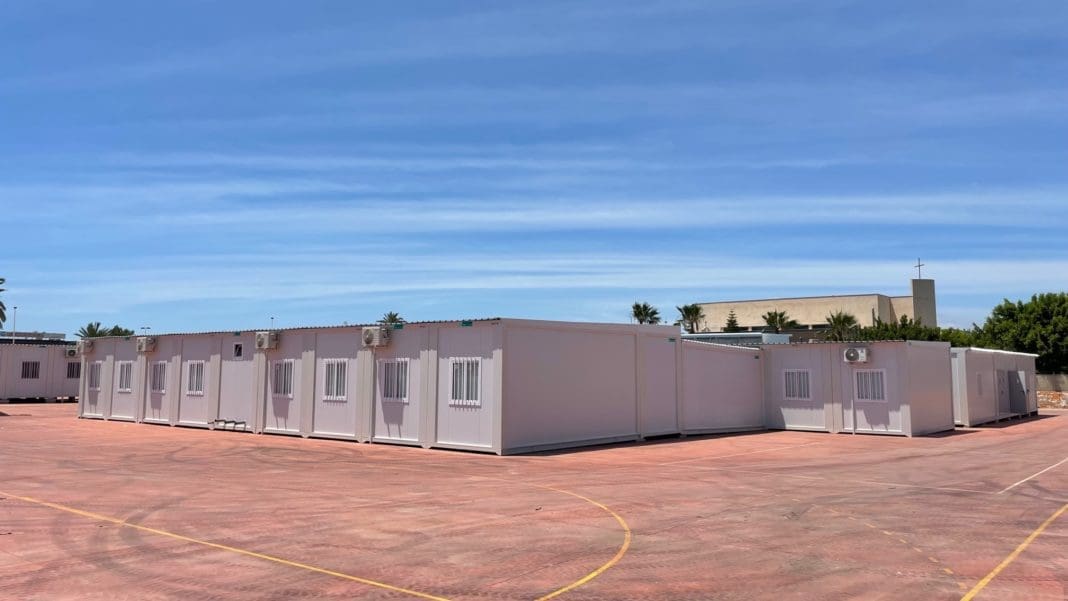 Este nuevo centro de aulas prefabricadas tiene un perfil de doble línea (6 aulas de educación infantil y 12 de primaria), pudiendo acoger a un total de 486 alumnos/as.
