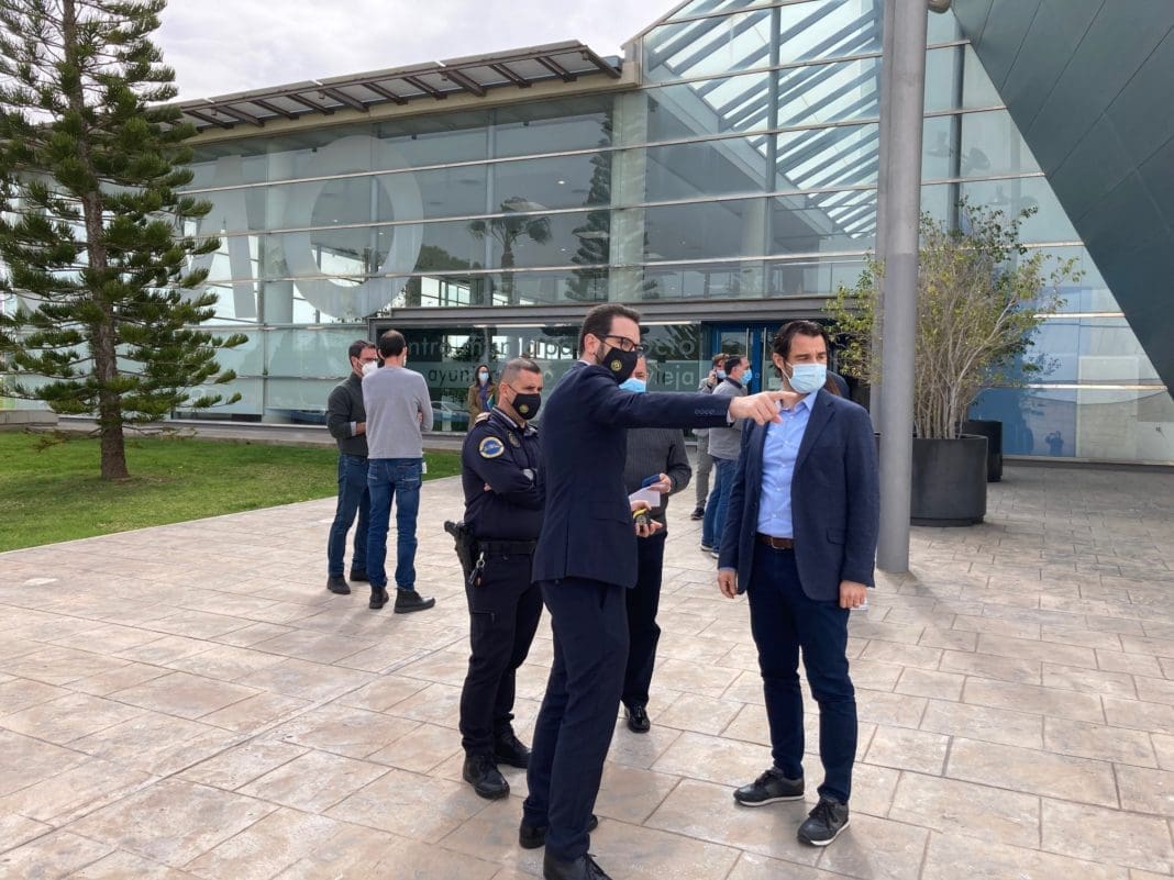 El alcalde de Torrevieja, Eduardo Dolón, junto con la concejal de Sanidad, Diana Box, el edil de Seguridad y Emergencias, Federico Alarcón, y el director Médico de Atención Primaria y Salud Mental del Departamento de Salud de Torrevieja, Hipólito Caro, ha visitado las instalaciones del Centro Municipal de Ocio (CMO) en donde se están llevando a cabo los trabajos de adecuación para convertirlo en el Centro de Vacunación Masiva del COVID-19.
