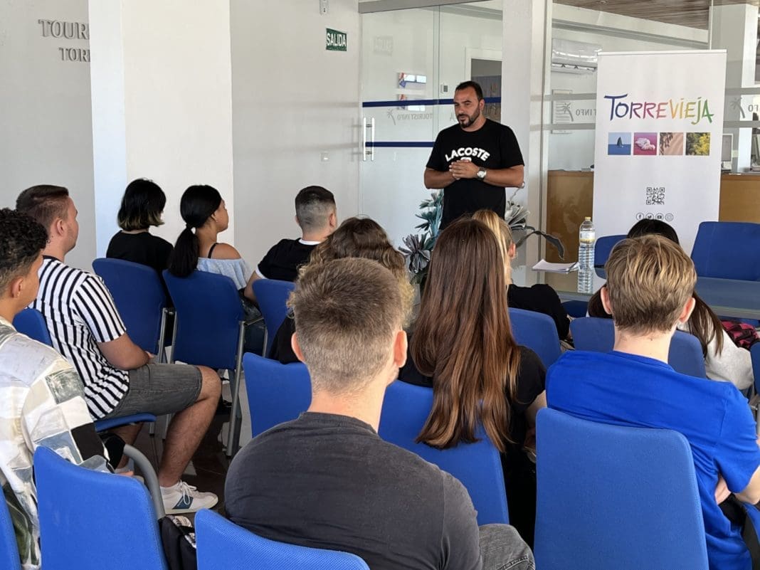 La concejal de Turismo del Ayuntamiento de Torrevieja, Rosario Martínez Chazarra, informa que hoy martes, 27 de septiembre, con motivo del Día Mundial del Turismo, se ha recibido en las instalaciones de la Oficina Municipal de Turismo del Paseo Vista Alegre, la visita de 18 estudiantes y 2 profesores del módulo GIAT (Guía, información y asistencia turística), del Instituto Mare Nostrum de nuestra ciudad.