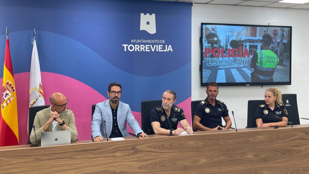 El Ayuntamiento de Torrevieja, a través de sus concejalías de Educación y Policía Local, ha presentado hoy la nueva Patrulla Escolar, un servicio especializado que comenzará a funcionar desde el primer día del curso, el próximo lunes 8 de septiembre. Si bien la vigilancia y atención a los centros educativos siempre ha sido una de las funciones de la Policía Local, gracias al reciente aumento de efectivos por parte del Ayuntamiento es posible poner en marcha esta unidad más profesionalizada, dedicada de manera específica a hacer seguimiento de alumnos con absentismo recurrente, controlar el acceso a los centros y garantizar la seguridad de los menores en su entorno escolar.