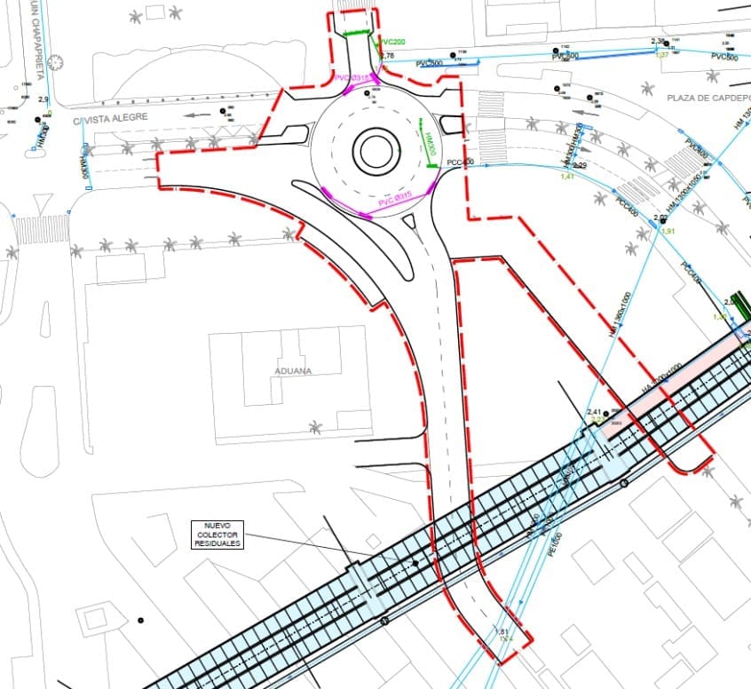 -Red de pluviales. Igualmente existente varios imbornales en la avenida Vista Alegre que serán desplazados de la ubicación adosándolos al bordillo proyectado que conforma la rotonda.