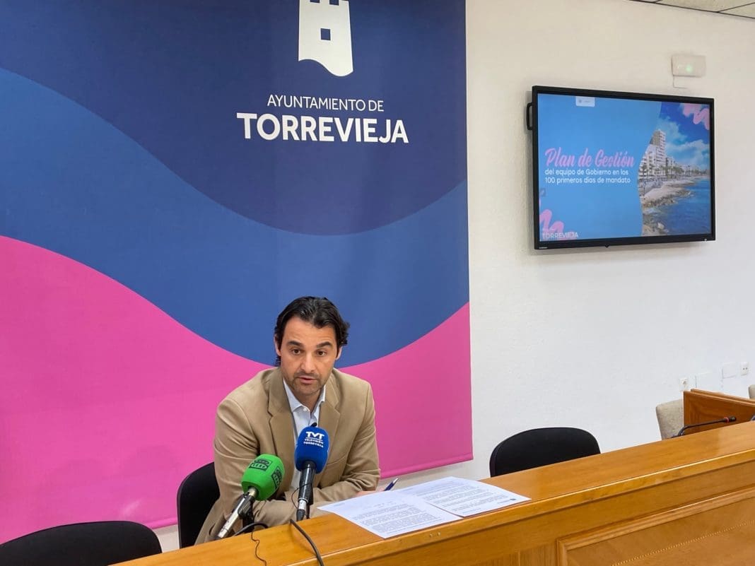 El alcalde de Torrevieja, Eduardo Dolón, ha presentado en la mañana de hoy un Plan de Gestión de su equipo de Gobierno en los 100 primeros días de mandato, en el que se va a llevar a cabo una inversión en proyectos, ejecución de obras y gestión de áreas por valor de más de 20 millones de euros. Un comienzo de curso político que pretende reactivar desde ya la gestión de este nuevo equipo de Gobierno.
