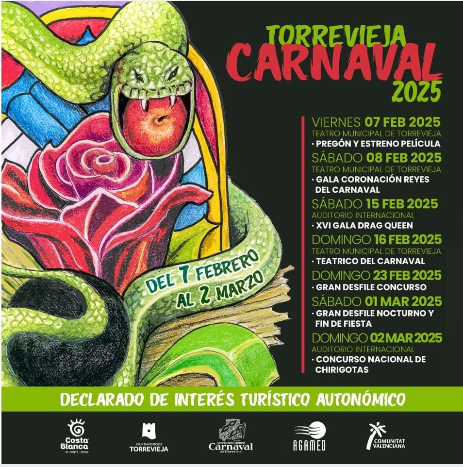Entre las novedades de este año 2025, destaca la mejora en las dotaciones económicas de los premios, pasando de 15.000 a 22.000 euros solo en el Desfile Concurso del Carnaval, que se celebrará el domingo 23 de febrero. Asimismo, se recupera el denominado “Teatrico” del Carnaval, se amplía la participación del Desfile foráneas, desfilando este año 15 comparsas de diferentes puntos de nuestro país. Tanto la Concejalía de Fiestas como la Asociación continúan apostando fuertemente por que el Carnaval de Torrevieja sea único, ya que es de las pocas ciudades de España que cuenta con 4 desfiles abiertos e inclusivos.