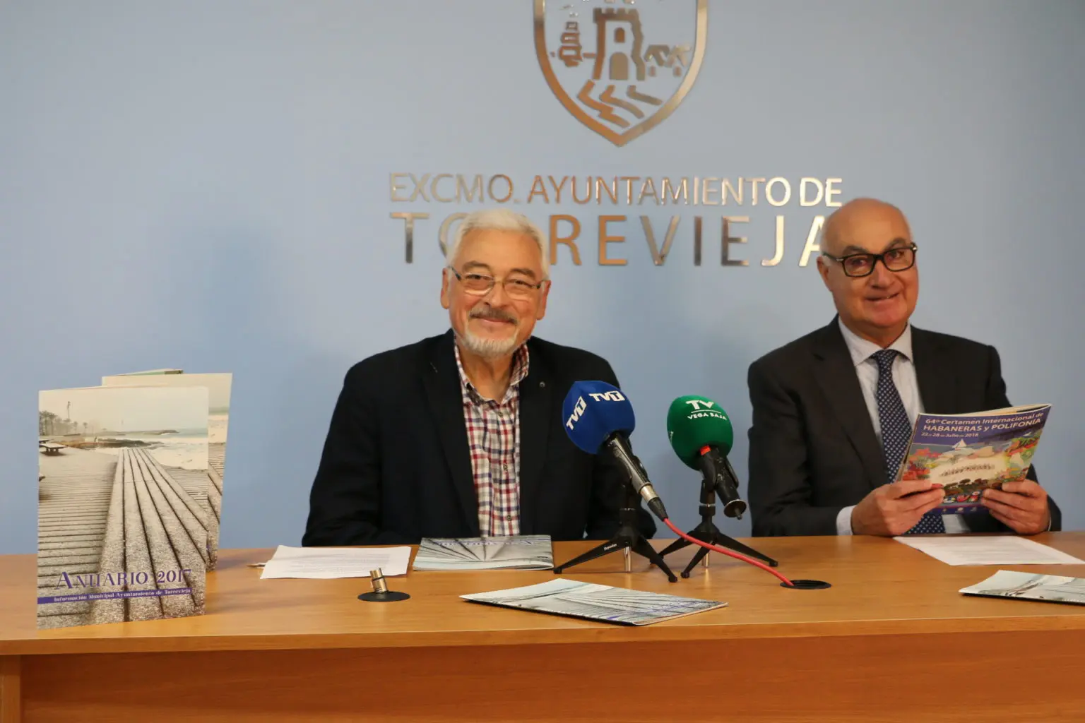 El alcalde de Torrevieja, José Manuel Dolón, junto con el concejal de Presidencia, Domingo Soler, presentaron ayer el anuario de información municipal 2017 en el que se recoge un resumen mes a mes de las noticias más significativas de cada concejalía y los hechos de mayor relevancia que se han producido en el municipio en el año que acaba de terminar.