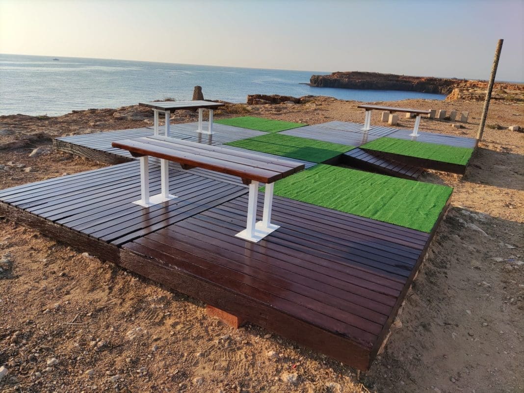 En el día de hoy han finalizado los trabajos en el área de descanso ubicada en la cala de los Trabajos, después que en días pasados hicieran lo propio en la cala de la Zorra. La actuación ha consistido en el restaurado todos los elementos existentes con trabajos de lijado, y tratamiento de la madera, así como la reposición de los bancos que se encontraban muy deteriorados.