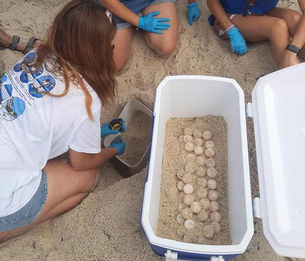 Los responsables han rescatado 64 huevos de la tortuga en la Playa de Los Locos, concretamente frente al Kiosco Gloria. De ellos, seis huevos han sido trasladados al Oceanogràfic de València.