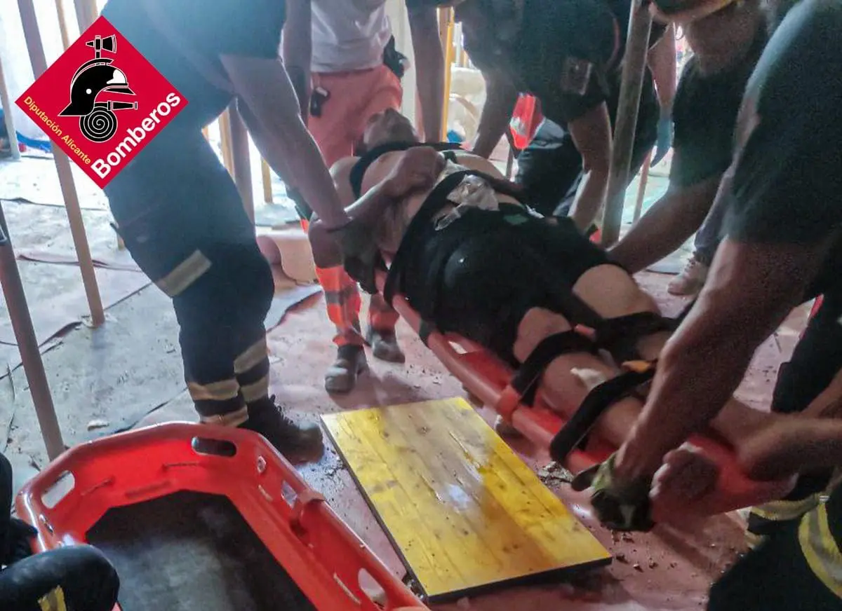 Un trabajador resultó herido ayer tras sufrir un golpe de calor y caer a una zona de obras en Orihuela Costa.