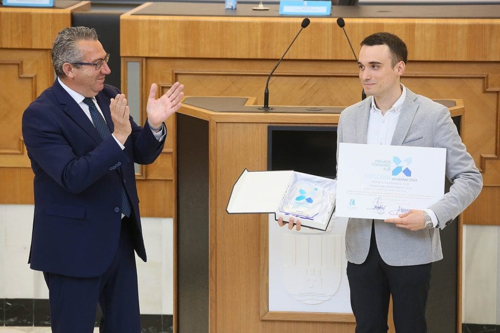 Los nietos de Fernando Albi, el director general de Administración Local, José Antonio Redorat, la vicepresidenta primera, Ana Serna, los diputados Juan de Dios NavarroCarlos PastorJosé Antonio BermejoAntonio BernabeuLourdes LlopisPaco Cano, Arturo Poquet y Gema Alemán, así como los miembros del jurado, han asistido también a esta ceremonia celebrada en el Salón de Plenos.