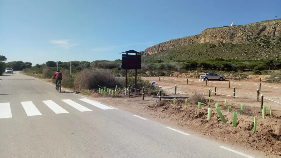 En esta primera fase de actuaciones para la regeneración del Cabo, se han cortado al tráfico los accesos irregulares a lo largo de la carretera mediante barreras vegetales, se han llevado a cabo reforestaciones populares para regenerar algunas de las zonas más