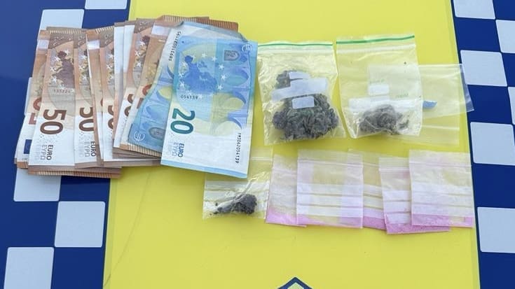 Los agentes procedieron a identificar a los ocupantes y a la comprobación del vehículo cuando observaron que uno de los hombres llevaba una bandolera que levantaba sospechas. Al registrarla encontraron en su interior sustancias estupefacientes fraccionadas en pequeñas bolsas de lo que parecía ser marihuana, anfetamina, éxtasis y cocaína, además de media pastilla de viagra. Junto con las drogas llevaba más de 700 euros en billetes, posiblemente de la venta de sustancias.