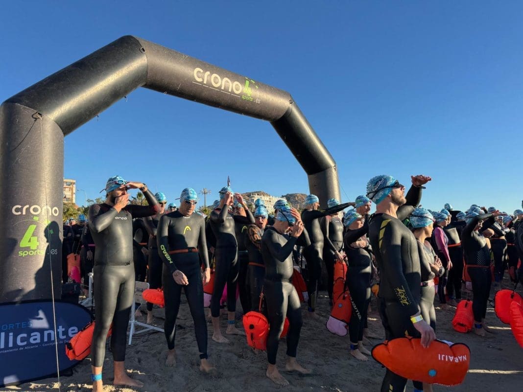 Más de 700 nadadores, en las distintas categorías, han participado en la Travesía de Navidad. A partir de las 9.15 horas lo han hecho los inscritos en la prueba de 3.000 metros en un circuito habilitado en la playa del Postiguet. Treinta minutos más tarde lo han hecho los de 1.500 metros. Del total de 700, más de un centenar han sido los que han nadado el novedoso Relevo Solidario 4×200, en el que cada uno de los integrantes de los equipos ha hecho una travesía de 200 metros. La solidaridad de los participantes se ha destinado a Aspanion, la Asociación de Madres y Padres de Niños con Cáncer de la Comunidad Valenciana.