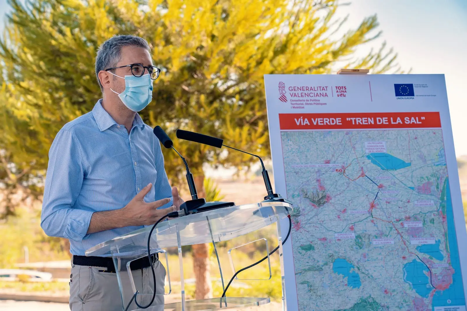 El conseller de Política Territorial, Obras Públicas y Movilidad, Arcadi España, ha presentado la Vía Verde que recupera la plataforma del antiguo «tren salinero» de San Isidro a Torrevieja.