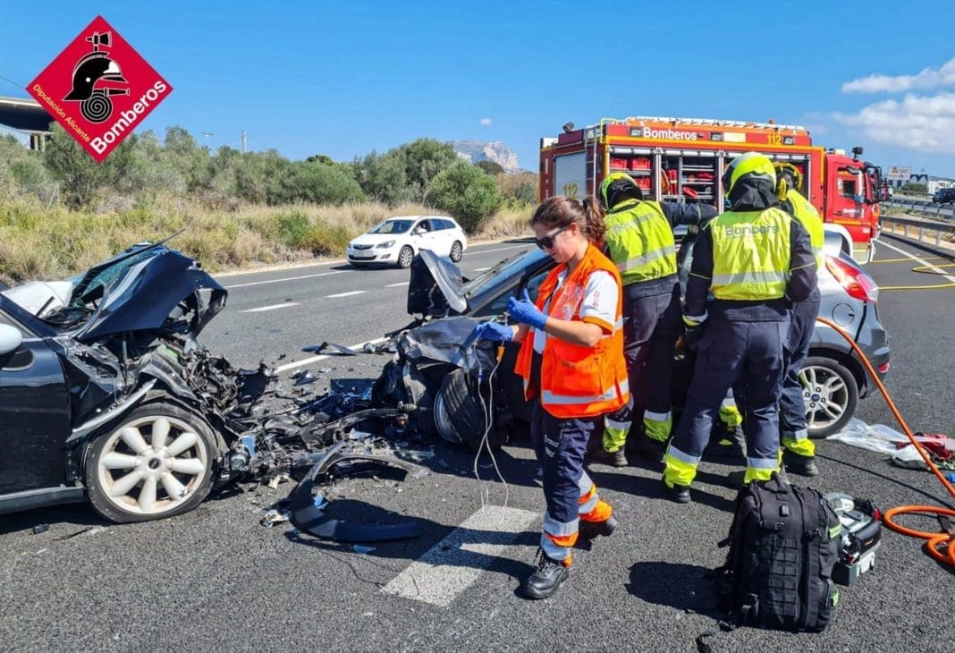 Dos vehículos han chocado frontalmente y la conductora de uno de los automóviles ha quedado atrapada dentro de su vehículo, por lo que se ha tenido que proceder a la extracción por parte de los bomberos del parque de Dénia y se le ha trasladado para asistencia sanitaria.