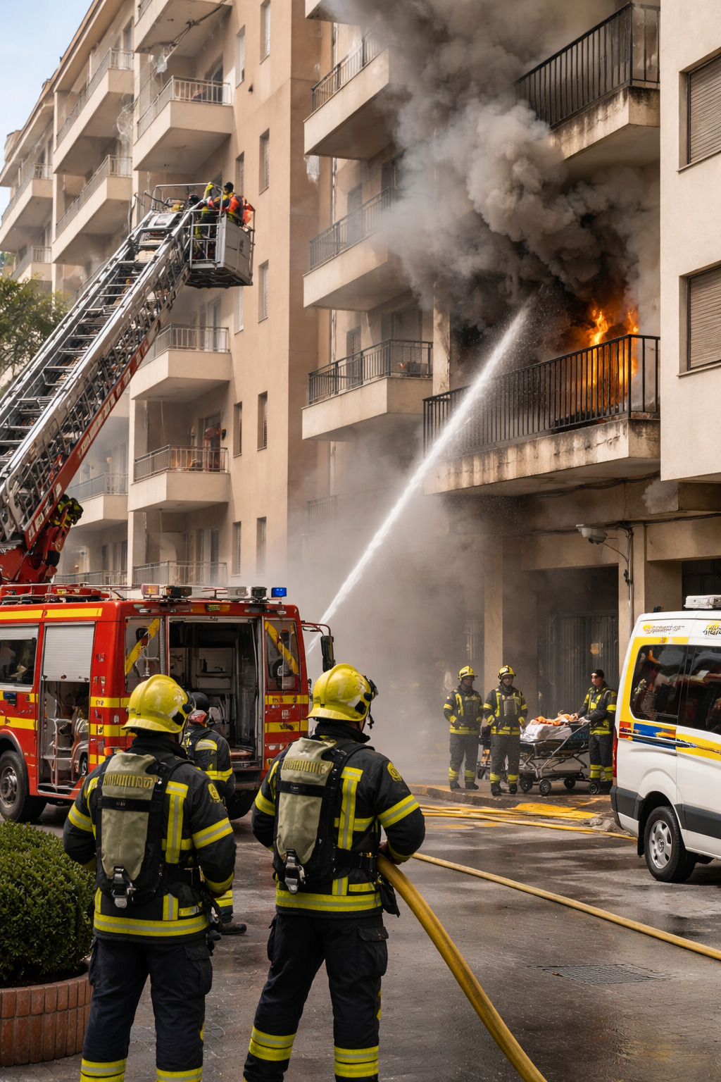 El fuego generó una gran cantidad de humo, lo que obligó a confinar a los vecinos en sus viviendas hasta habilitar una ruta de evacuación segura, por la que fueron desalojadas tres personas.