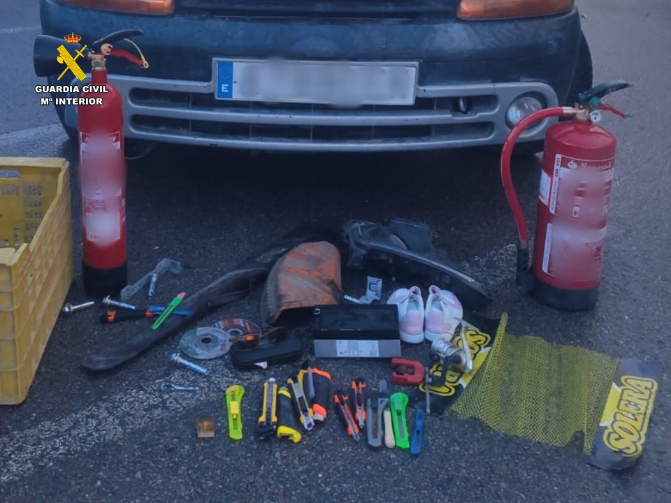 En el momento de la detención, los agentes intervinieron diversas herramientas, una funda para arma larga, un sistema de audio para vehículos, un arma corta simulada y otros efectos. Además, se lograron recuperar tres rollos de manguera de cobre, que los detenidos habían vendido previamente en una chatarrería.