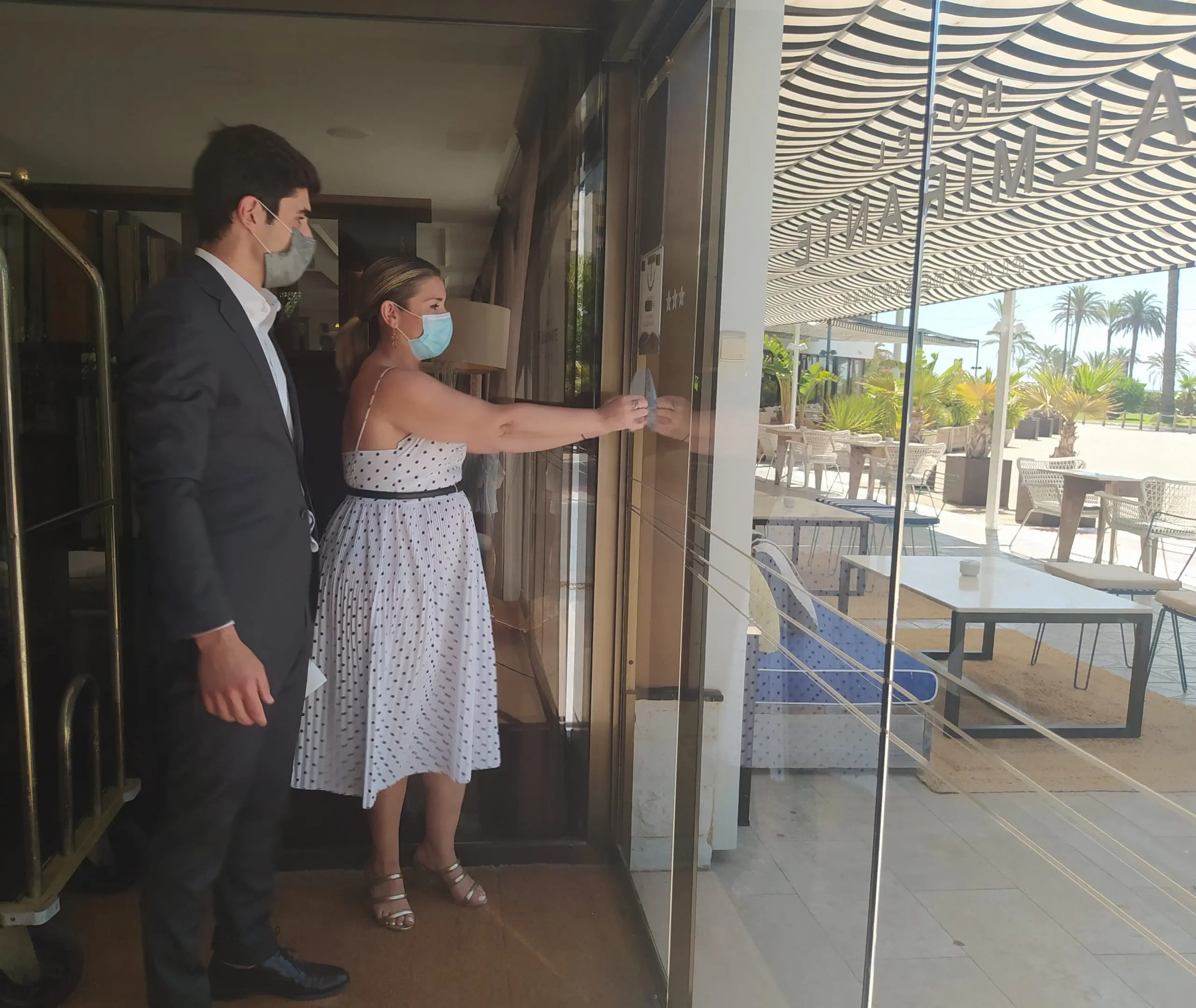 El Hotel Almirante de la playa de San Juan ha sido el primer hotel en ser reconocido con el distintivo «Alicante Segura». Al acto han asistido la vicealcaldesa, el director del hotel y la presidenta de la Asociación Provincial de Hoteles de Alicante (APHA).