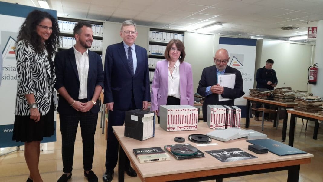El presidente de la Generalitat, Ximo Puig, ha recibido esta mañana, por parte de la rectora de la Universidad de la UA, Amparo Navarro, un USB con todas las grabaciones del Consell Preautonómico. La UA recibió las grabaciones originales en 2013 y procedió a su digitalización.