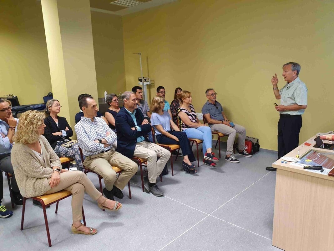El director del Centro Experimental CYBORG y de la Cátedra de Mecenazgo de Investigación en Simulación Clínica UMH-Fundación ASISA de la Universidad Miguel Hernández (UMH) de Elche, Fernando Borrás, ha presentado esta mañana el proyecto “Universidad CardioProtegida”. Dentro de esta iniciativa, el profesor y secretario de la Cátedra e instructor en Soporte Vital Avanzado del Plan Nacional de Reanimación CardioPulmonar. Consejo Español de Resucitación CardioPulmonar, CERCP – ERC, Juan Manuel Caturla Such, ha impartido al equipo de Dirección de la UMH el curso “Soporte vital básico con desfibrilador externo en adultos fuera del hospital”, dirigido al personal no sanitario.