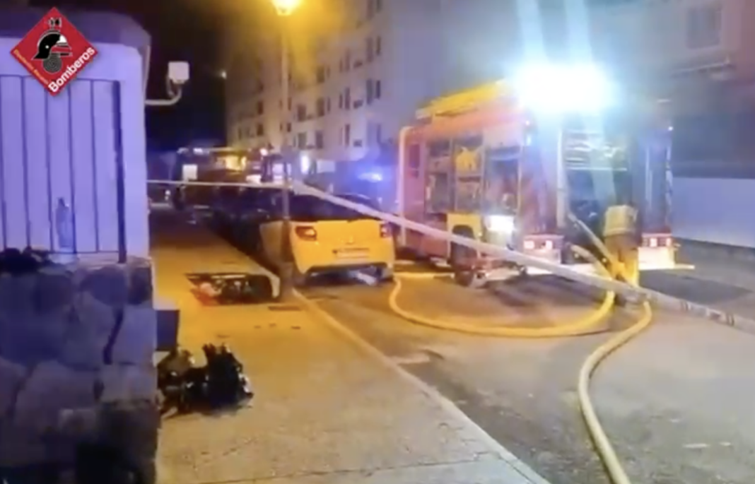 El fuego calcina tres vehículos y provoca daños de diversa consideración en otros 18 en la calle Ciclón del municipio alicantino.