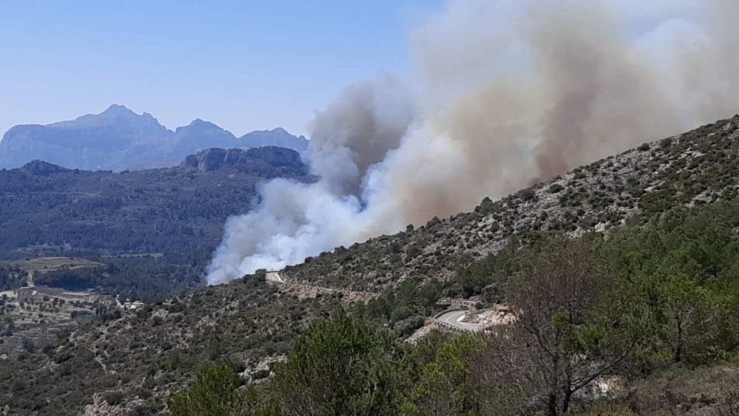 En las labores de extinción del fuego, que no ha causado heridos por el momento, están participando una unidad mando jefatura, una bomba rural pesada, una bomba forestal pesada con un sargento, dos cabos y seis bomberos de los parques de Cocentaina y Benidorm, además de los citados medios aéreos y las Unidades de Bomberos Forestales.