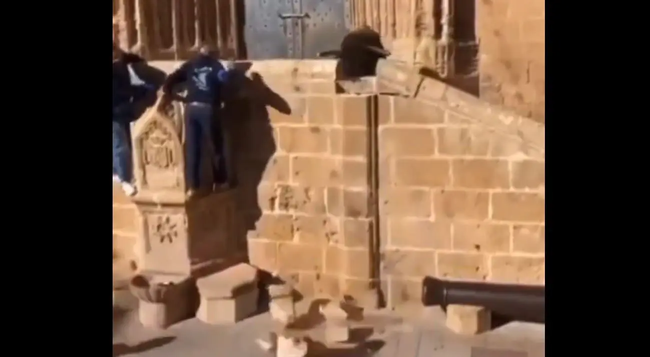 El animal, situado en la parte alta de la escalera, ha intentado cornear a un joven que intentaba reconducirlo, golpeando en el proceso el muro del que se han desprendido diversas piedras.