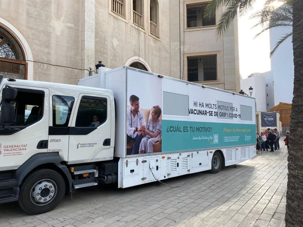 La unidad móvil de vacunación de la Conselleria de Sanidad ha administrado en su primeros dos días de ruta en Alicante y Elche un total de 696 dosis de vacunas frente a la gripe y 508 frente a la Covid-19.