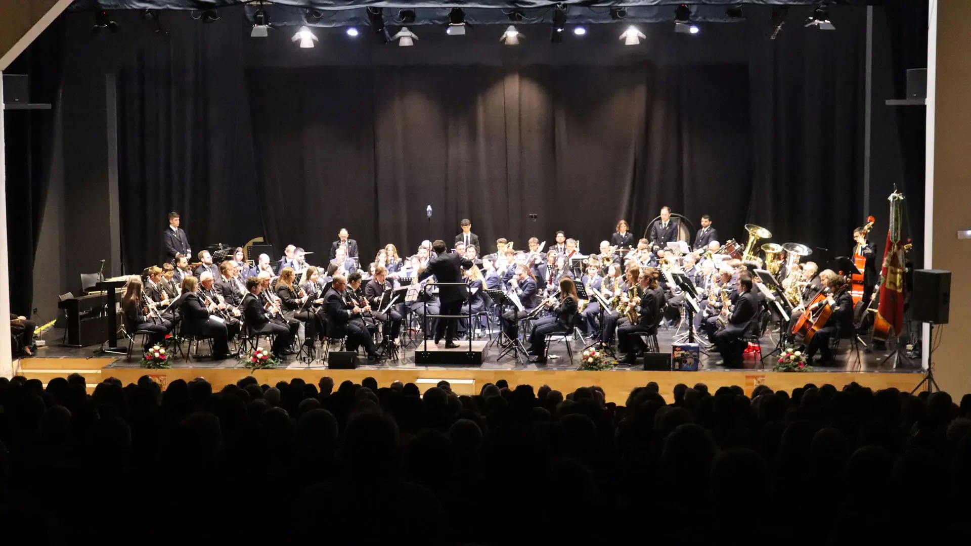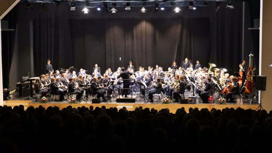 Una vez recibidos los nuevos integrantes, se ha iniciado el concierto bajo la dirección de Rafa Gómez. La pieza elegida para comenzar ha sido Jaume Antón, de Salvador Chuliá Hernández, dedicada al presidente de honor de esta entidad que falleció el pasado mes de febrero. A continuación, el repertorio también ha incluido las obras Música y Vinos, de Manuel Morales Martínez; Persis (Obertura), compuesta por James L. Hosay; Armenian Dances (Part 1), de Alfred Reed; y Pompeii, de José Alberto Pina Picazo.