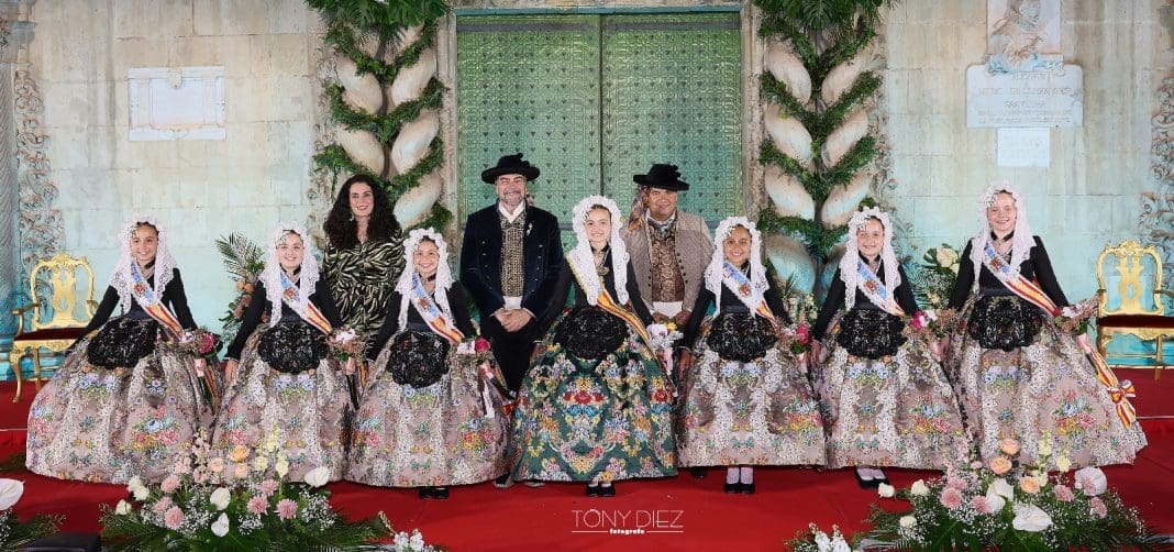 Junto a Valentina Tárraga también recibieron su banda las seis dames d’honor que la acompañarán durante todo su reinado: Adriana Torres Martínez, Sofía García Velasco, Elma García Javaloyes, Noa Torres García, Alba Otero Sereix y Carla Vicedo Morote. Todas ellas fueron seleccionadas hace apenas dos semanas en la plaza de toros de Alicante y compartieron protagonismo y emoción sobre el escenario.