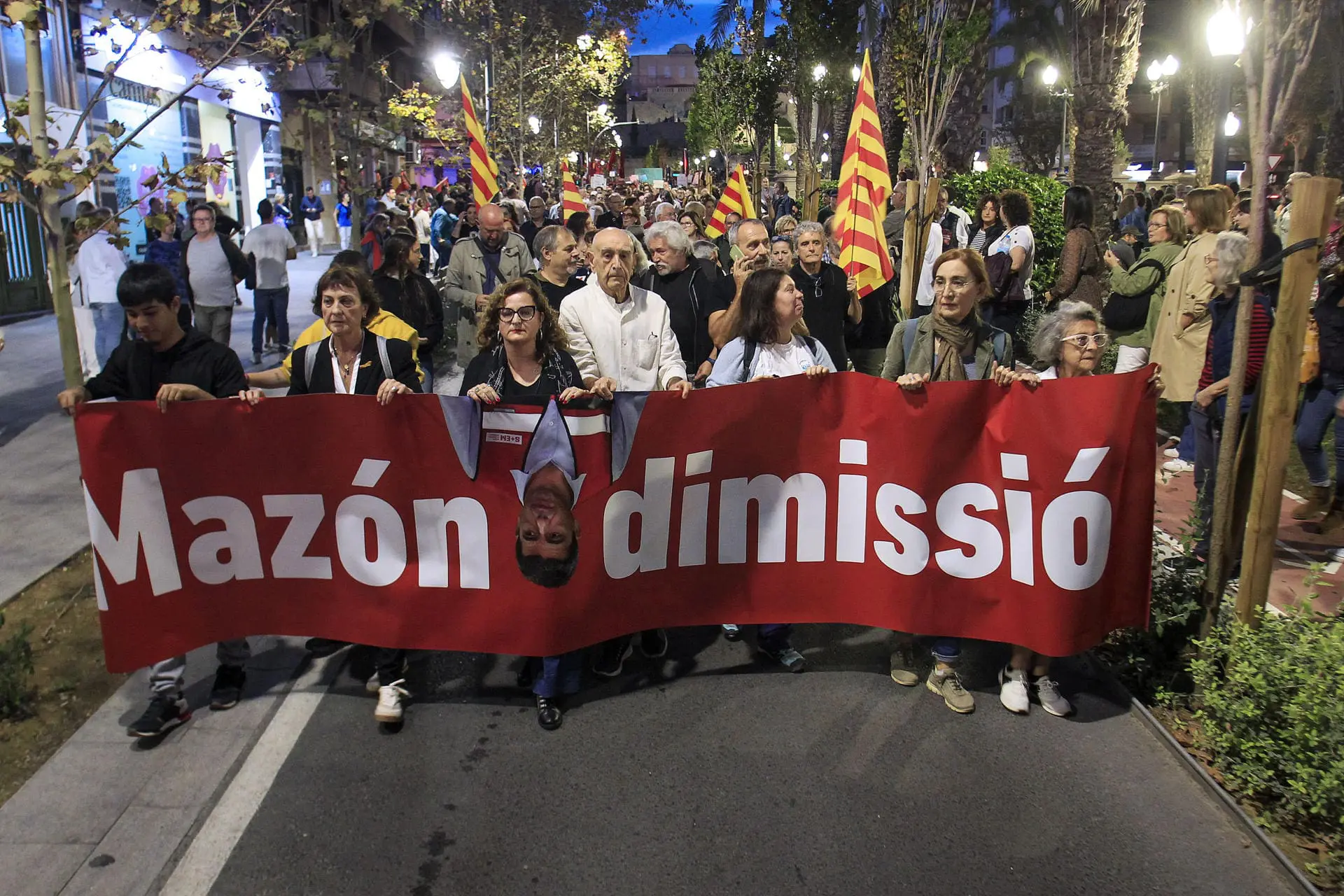 Varios miles de alicantinos han gritado ‘Mazón dimisión’, en referencia al presidente de la Gneralitat valenciana, Carlos Mazón, por las calles de la ciudad en una manifestación sin incidentes contra la gestión del Consell valenciano en la crisis de la dana de Valencia.