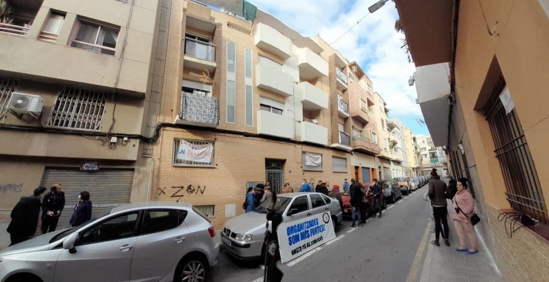 Una familia residente en un bloque ocupado en la calle Pelayo de Alicante ha conseguido, in extremis, retrasar el desalojo de su vivienda previsto para las nueve de esta mañana. El Juzgado de Instrucción número 12 de Alicante les ha concedido cinco días hábiles para aportar un certificado de reconocimiento de vulnerabilidad y optar así a un aplazamiento del lanzamiento de la vivienda en la que residen desde hace siete años. La familia cuenta con dos menores de uno y siete años y se encuentra en situación de desempleo.