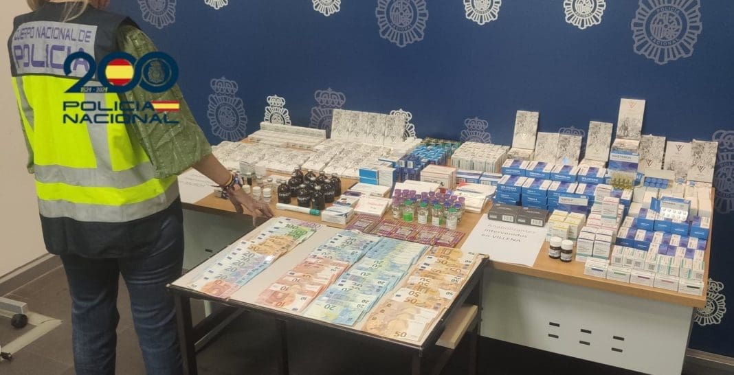 La Policía Nacional ha detenido a los presuntos autores de un delito contra la salud pública en las localidades de Villena y Murcia. Se dedicaban a la venta de sustancias utilizadas para potenciar el rendimiento deportivo, usando para la captación de clientes un gimnasio de una localidad de Villena. También realizaban entregas directas en persona en otras localidades. Se intervinieron una gran cantidad de sustancias, dinero en metálico y un vehículo de alta gama.