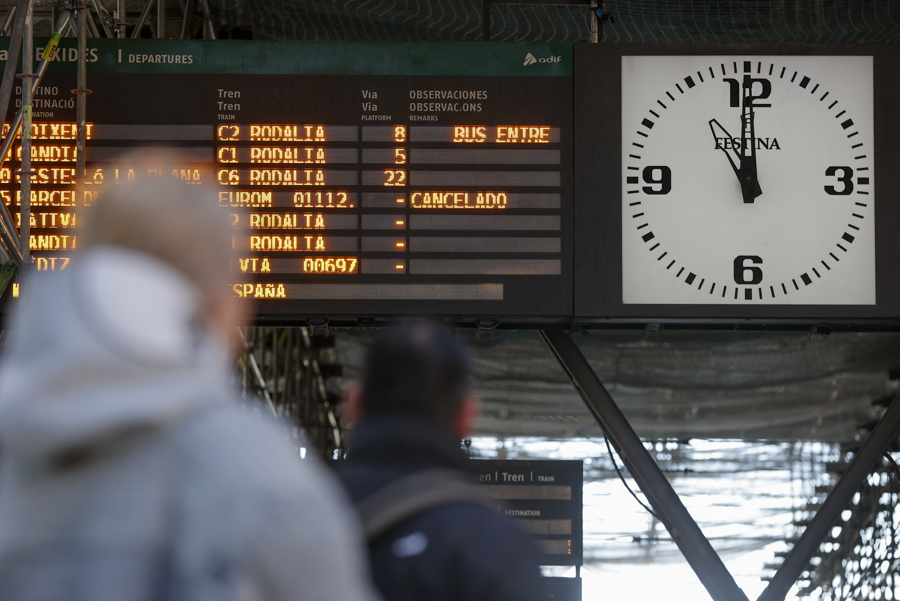 Del mismo modo, el tren con salida desde Alicante a las 09:15 horas y llegada prevista a Barcelona a las 14:30 también ha finalizado recorrido en la estación valenciana.