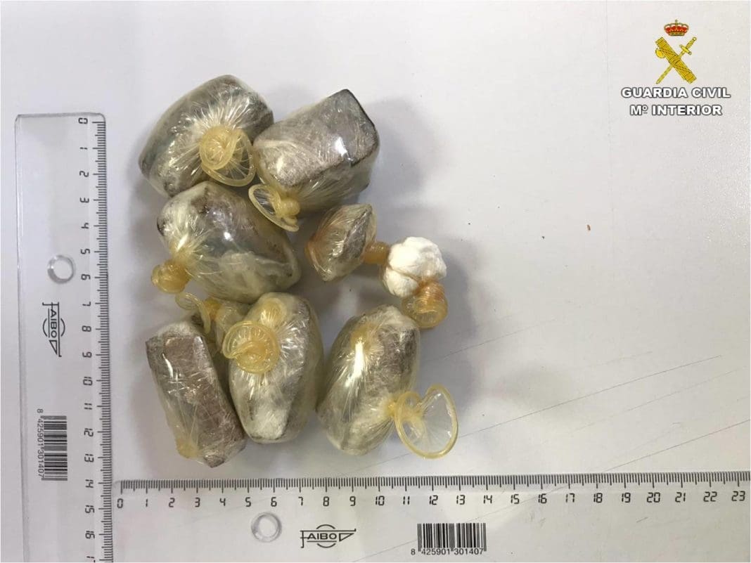 Dos agentes femeninas la acompañaron hasta una zona de cacheo, donde tras inspeccionar el interior de su ropa le hallaron 14 trozos de hachís (100 gramos), metidos en 7 preservativos, y dos bolsitas que contenían 2 gramos de cocaína.