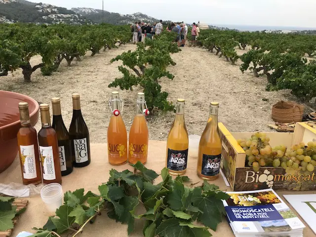 Una de las novedades de este año ha sido que los visitantes han podido disfrutar de un nuevo vino elaborado por los agricultores del proyecto Biomoscatell. Se trata del vino blanco espumoso “Cova dels Arcs”. Un caldo totalmente natural, sin sulfatos y elaborado siguiendo el proceso “orange wine” inspirado en técnicas antiguas que consiste en macerar la raspa 48 horas y fermentar en botella. En nariz se perciben los aromas de la madera, de la cepa, la piel y las pepitas y en boca es un vino refrescante con matices dulces del moscatel que lo hacen ideal en aperitivos así como acompañamiento de pescados y quesos.