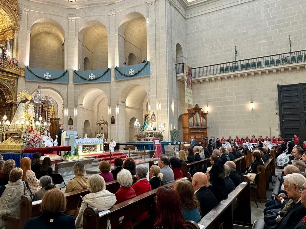 La imagen peregrina de Nuestra Señora de los Desamparados llegó a Alicante este viernes. Fue recibida a las puertas de la Concatedral de San Nicolás. Allí, la Orquesta Barroca Valenciana, la coral Discantus y el Coro y Orquesta de la Uned de Elche, bajo la dirección de Manuel Ramos, interpretaron la ‘Misa de la Coronación’ de Mozart y los himnos de ambas coronaciones.