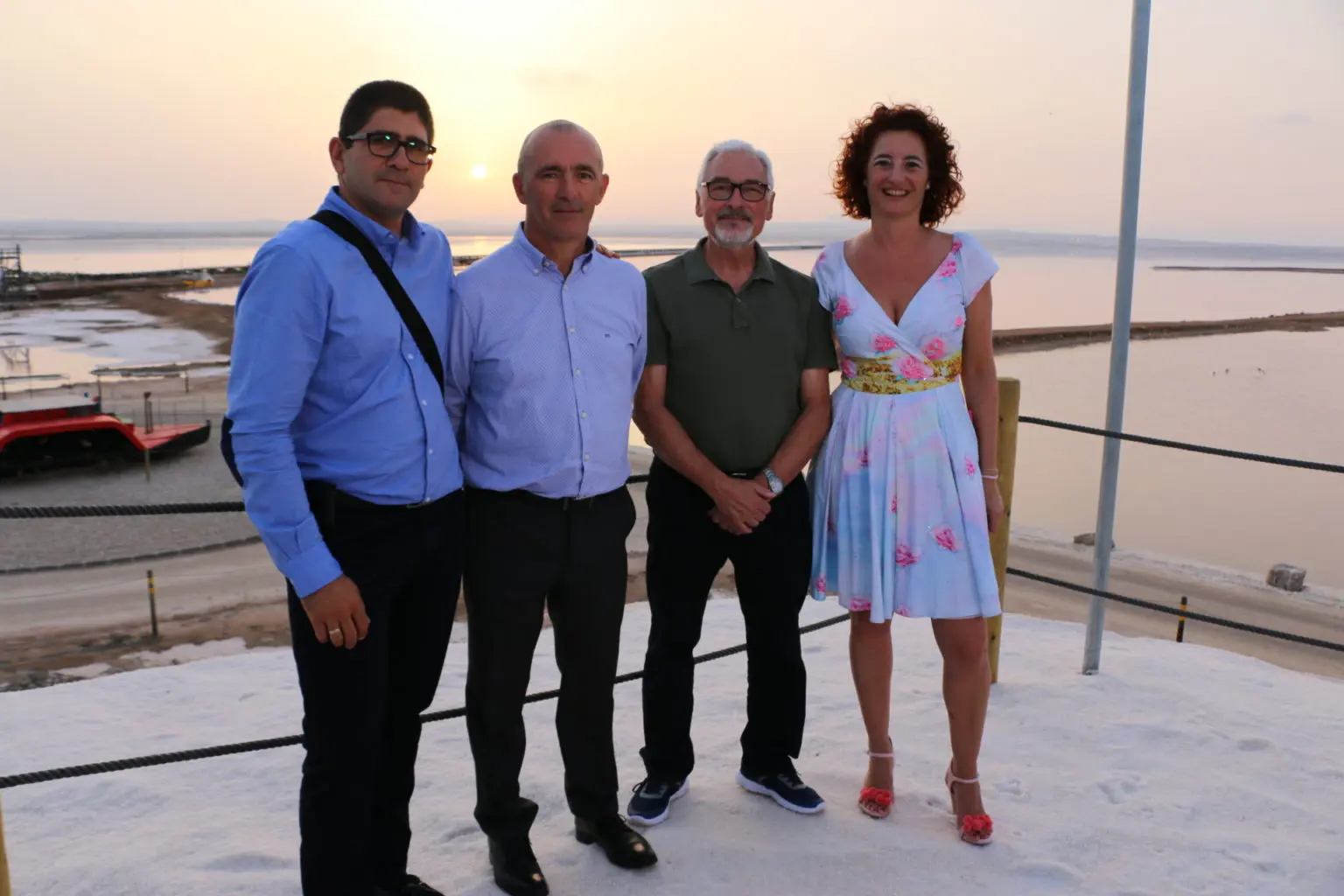 La visita inaugural a las salinas de Torrevieja tuvo lugar ayer por la tarde con la presencia del alcalde de la ciudad, José Manuel Dolón, el director de la explotación salinera, Joseph Pérez, y la concejala de Turismo y Medio Ambiente, Fanny Serrano. En la actividad también participaron otros miembros de la Corporación Municipal y operadores turísticos con el fin de que puedan prescribir las bondades de este nuevo producto.